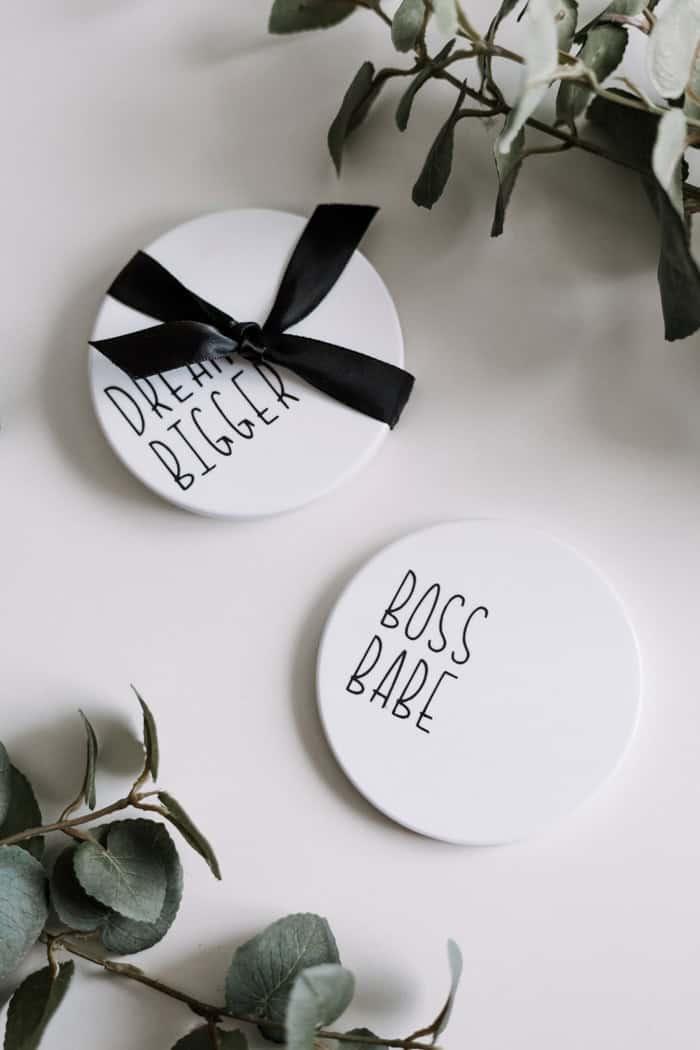 12. Personalized Coasters from Love Create Celebrate. More great DIY Christmas gifts. Your friends would love opening up these and enjoy their inspiring messages. The holidays are the perfect time for sending a little encouraging message like these.
