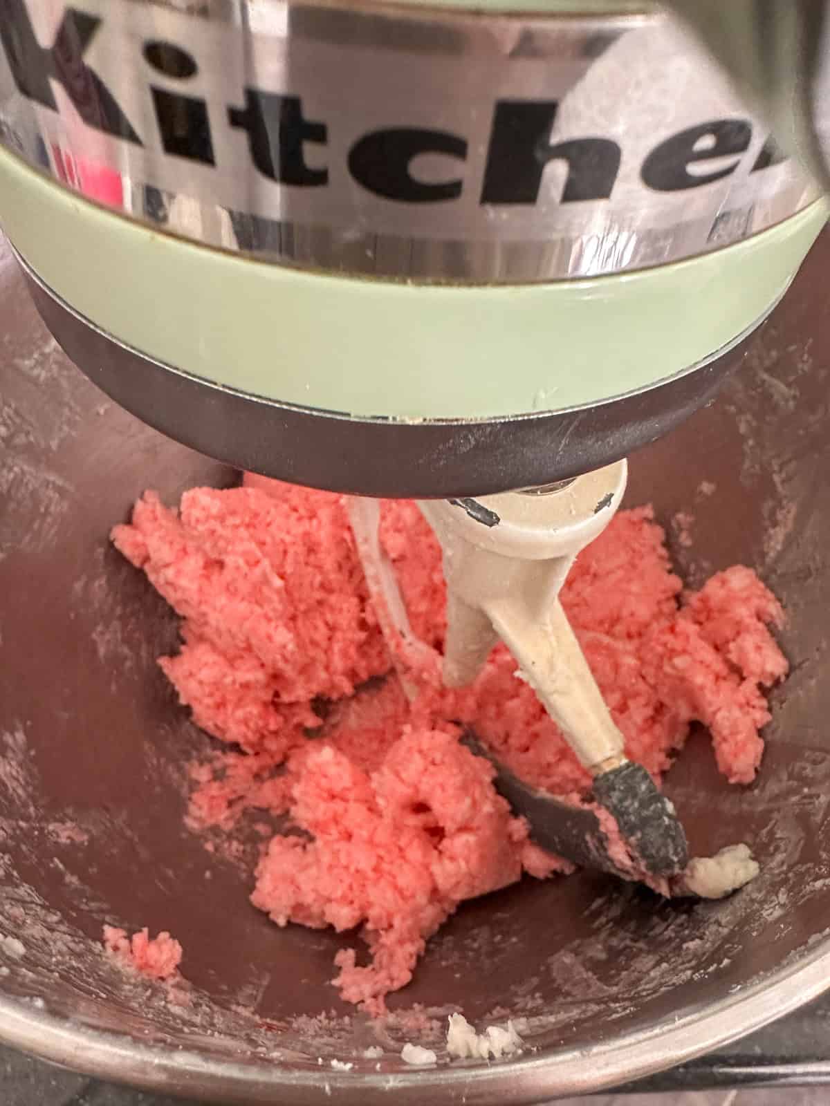 - Step 4: Color The Pink Layer Add 2 drops of red food coloring to the remaining mixture in the stand mixer bowl. Mix on medium speed until the color is fully combined and you have a uniform pink shade. If you want a deeper pink, add one more drop of food coloring and mix again.