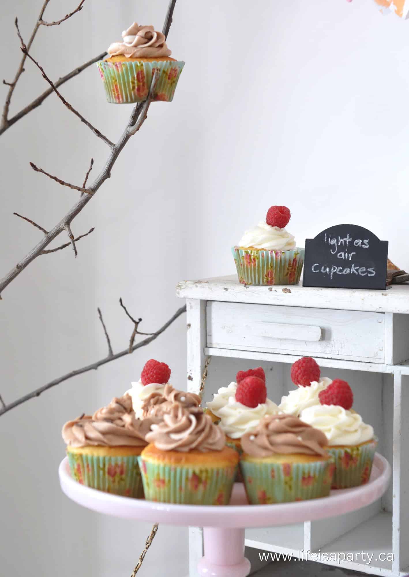 So we had a few cupcakes floating up and one in a tree branch. These cupcakes were delicious. They were made with a vanilla cake mix, but for something special some have raspberry jam in the middle, and some have nutella in the middle. Yum.