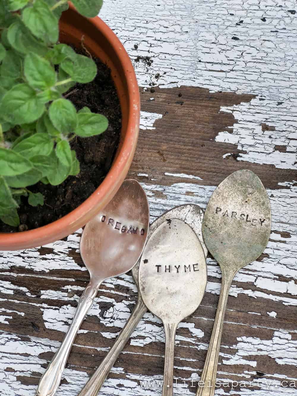 How To Make Stamped Spoon Garden Markers: use metal stamps to engrave old spoons with plant and herb names, or funny or inspirational sayings.