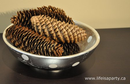 I didn't do too much else on the table, just some candles, and the silver bowl, filled with some pinecones.